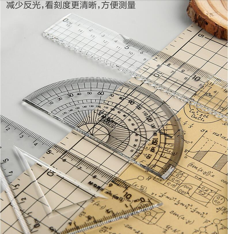 晨光文具 透明套尺 亞克力四件套15cm直尺三角板量角器學(xué)生用考試繪畫專用制圖測量隨身便攜多功能幾何工具